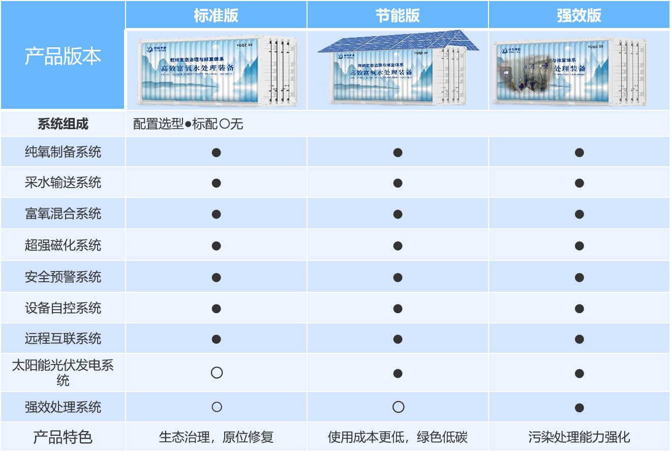 ✦ 强效版:在节能版产品基础上耦合其他工艺,进一步强化高效富氧水处理装备对水中某个或多个污染因子处理能力。